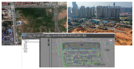 利用GOOGLE卫星地图进行空间位置测距,结合BIM软件CIVIL 3D进行图纸和地形关联比对,加上无人机技术,对施工项目空间进行整体测绘,方便下一步场地布置,对施工面也有大概预测。