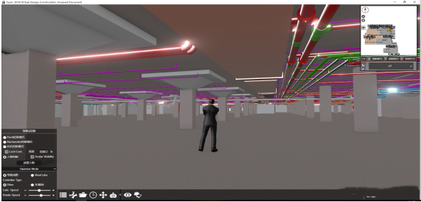 BIM中心首先将场地布置模型、结构建筑模型等导入BIM5D进行施工推演,虚拟漫游,通过可视化浏览,合理调整和浏览场地,建筑模型,调整不合理的构造,达到设计使用人性化的要求。从而减少返工,提高安全;提高可视化,方便及时调整;便于沟通,方便协作;过程展示,真实直观。