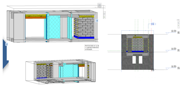使用BIM技术进行砌体及二次结构深化,导出CAD排砖图,根据精确计算出划分区域内砌体用量结合墙面位置投放所需砌块,定点投放,减少了场内砌筑工人二次搬运情况,节约了砌筑时间。
