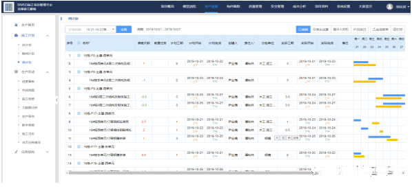 通过BIM 5D进行总、月、周计划进度管控,实时跟踪关键路径任务进展,识别进度风险。每周生产施工业务全覆盖,实时记录,留痕可追溯,直接上会出周报,打印施工日志留存。