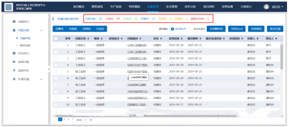 在每周生产例会前,可以通过BIM 5D导出数字周报,进行问题的统计、分析和导出。实现了质量安全问题记录详细、反馈及时、统计准确,节约了质量安全人员每周盘点的时间和精力。