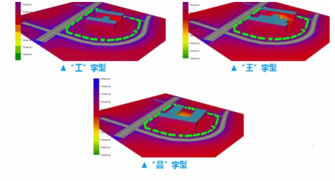 根据踏勘结果,整理数据建立场地三维信息模型,基于场地模型,建立三种总体方案布局模型。对方案布局模型进行性能分析,为布局选型提供数据支撑。确定方案布局后,在BIM平台上进行建筑方案推敲,对方案模型内部空间进行三维采光模拟、自然通风模拟、空调送风模拟。计算全面负荷,优化建筑方案设计。