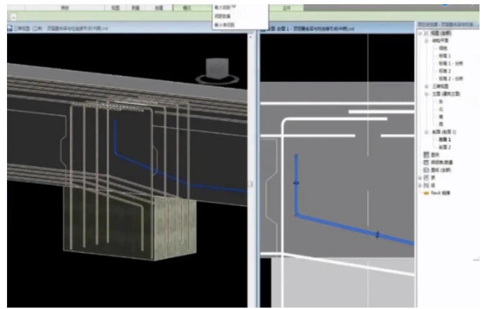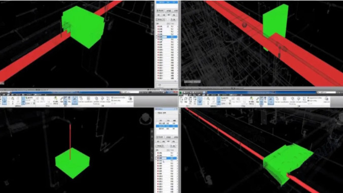 BIM设计质量控制分为模型检查与设计优化两部分:BIM设计师将建好的各专业模型进行整合,对整合后的模型进行全专业间碰撞检测。BIM工程师对碰撞进行梳理筛选,编制出《BIM设计碰撞分析报告》。基于碰撞分析报告,对全专业模型进行三维管网综合优化调整,形成机电优化整体模型。基于机电优化整体模型,创建管线预留开洞模型,还可在三维钢筋模型上进行配筋检查,优化三维节点钢筋。
